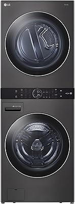 LG WashTower Stacked Smart Laundry Center 4.5 Cu.Ft. Front Load Washer Fully Automatic & 7.4 Cu.Ft. Gas Dryer in Black Steel wSteam WKGX201HBA